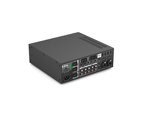 Для подключения внешних источников сигнала предусмотрено три не балансных линейных входа на разъемах 2RCA и два универсальных комбинированных входа на XLR/TRS. Выбор активного линейного входа производится с помощью селектора, размещенного на лицевой панели устройства. По умолчанию при включении устройства будет активен первый вход, поэтому подключать основной источник сигнала рекомендуется именно к нему. Для каждого из комбинированных входов есть возможность подачи фантомного питания (24 В) конденсаторным микрофонам, а также активации функции приоритета для подавления сигнала линейных входов при появлении сигнала на микрофонных. Все входы усилителя оборудованы регуляторами настройки чувствительности, дополнительно предусмотрен двухполосный эквалайзер. Это дает возможность тонко настроить звучание фоновой музыки, сохранив при этом высокую четкость и разборчивость передачи речевых сообщений.