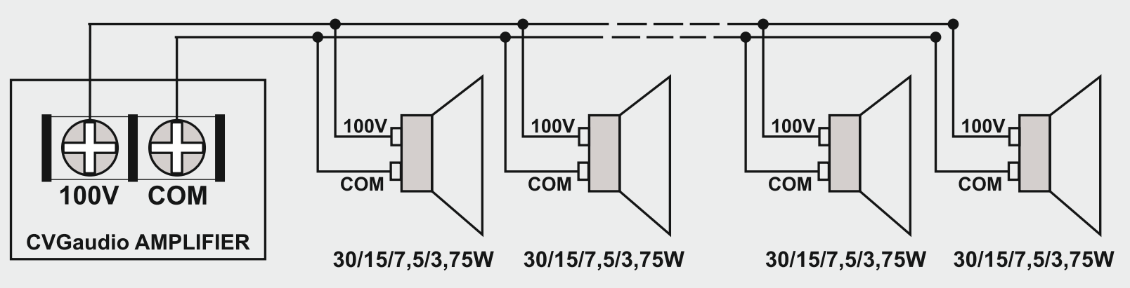 Мягкое и глубокое звучание басов обеспечивает встроенный 8” вуфер, изготовленный из целлюлозы со специальной пропиткой, а купольный твиттер диаметром 1" ярко и отчетливо воспроизводит высокие частоты. Для работы в трансляционных линиях с напряжением 100В конструкцией предусмотрен согласующий трансформатор с 4 отводами, позволяющими установить необходимую мощность устройства – 3.75, 7.5, 15 или 30 Вт. Это дает возможность адаптации устройства к особенностям каждого конкретного помещения, в числе которых габариты, назначение, зашумленность, необходимый уровень звукового давления и т.д.