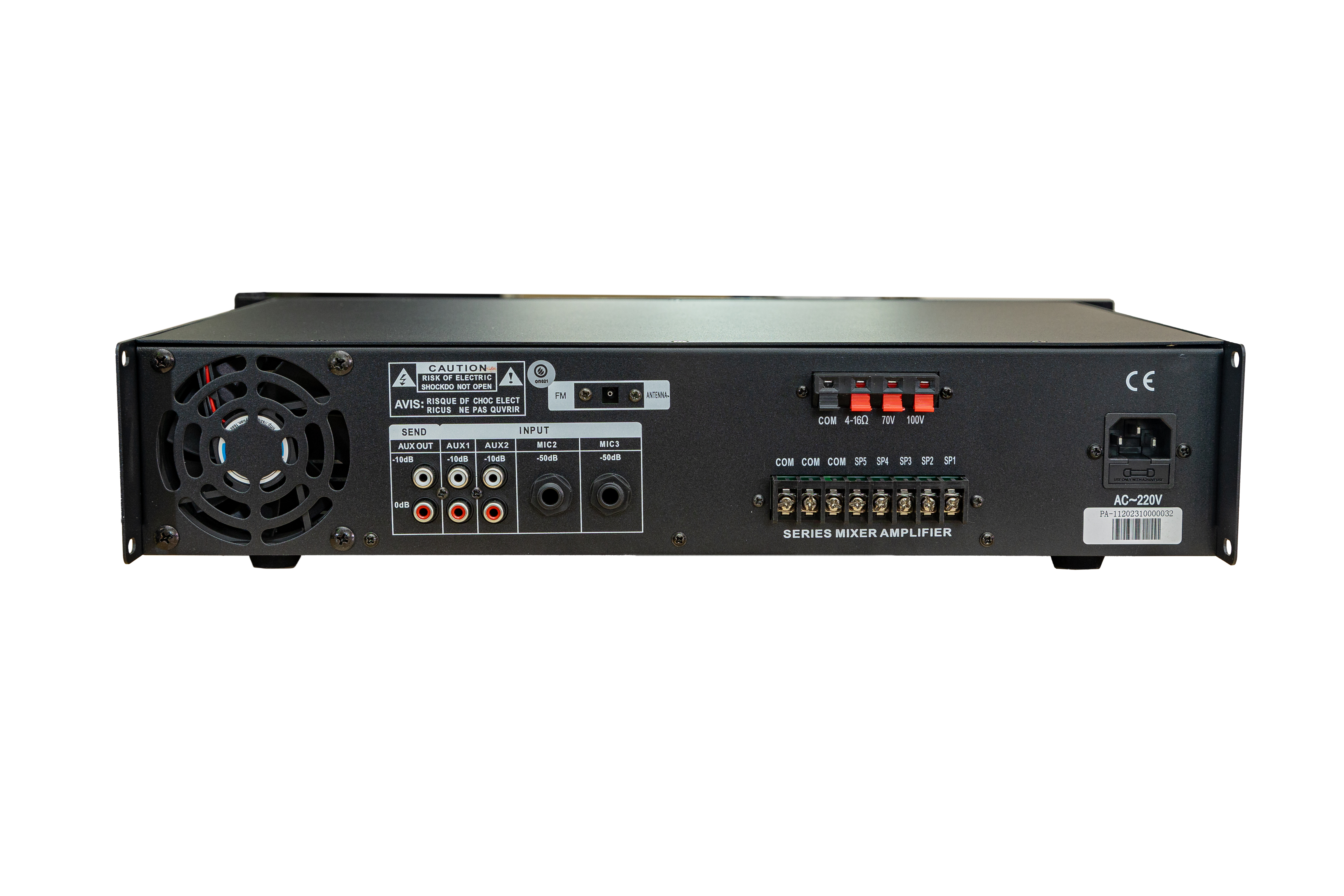Аудиовходы: 2 линейных с разъёмами 2RCA, для подключения внешних источников сигнала; 3 микрофонных с разъемами TS Jack 6,35 мм с приоритетом у входа MIC1. Аудиовыходы: пружинные клеммы и блок винтовых клемм для подключения акустики, в том числе через селектор зон; линейный с разъемами 2RCA, к которому можно подключить следующий усилитель или рекордер.