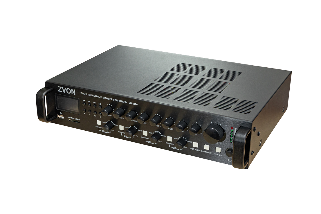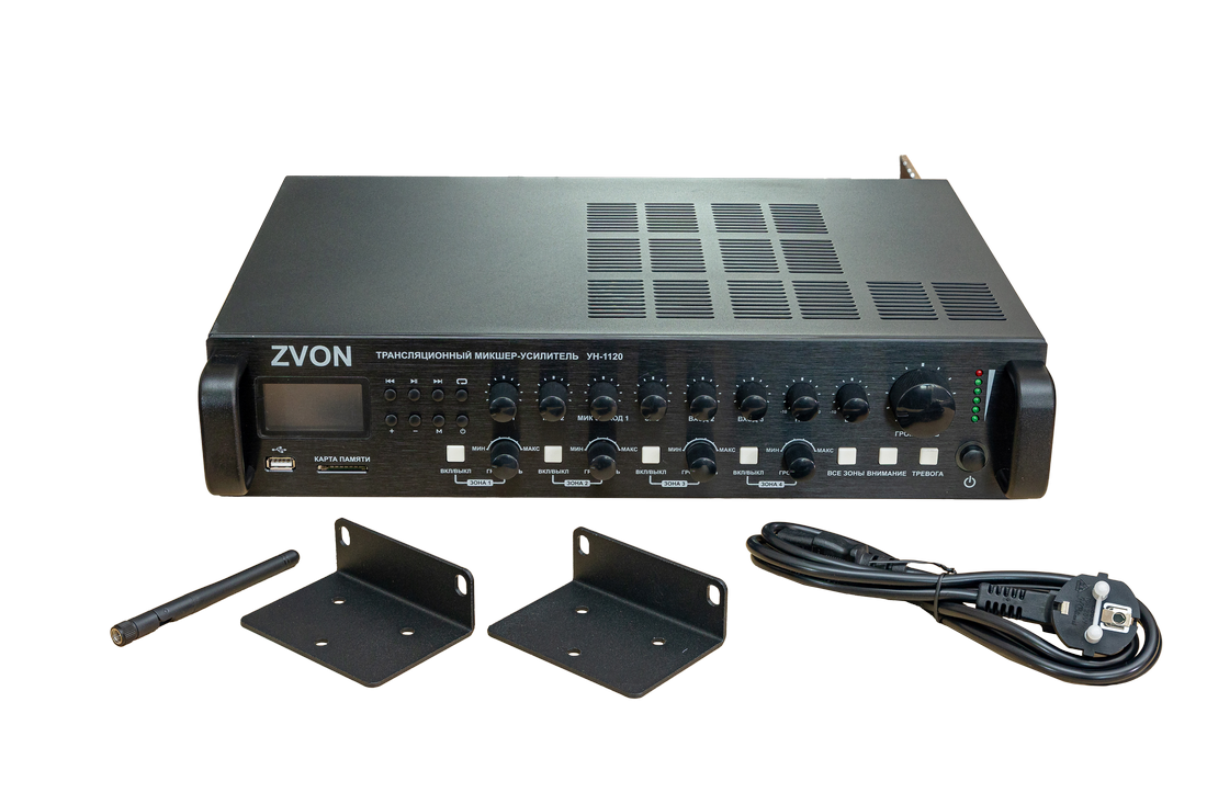 Микшер-усилитель УН-1120 из серии ZVON от MKV Pro подходит для создания аудиосистем разветвленных на 4 зоны и выполняющих функции музыкально-речевых трансляций и голосовых объявлений. Встроенный медиаплеер позволяет применять усилитель автономно, без подключения внешних проигрывателей или источников звука. Целесообразна эксплуатация в ресторанах, гостиницах, финансовых учреждениях, офисах, на вокзалах, в залах ожиданий и т.д.