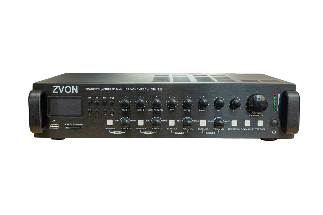 Микшер-усилитель УН-1360 из серии ZVON от MKV Pro подходит для создания аудиосистем разветвленных на 4 зоны и выполняющих функции музыкально-речевых трансляций и голосовых объявлений. Встроенный медиаплеер позволяет применять усилитель автономно, без подключения внешних проигрывателей или источников звука. Целесообразна эксплуатация в ресторанах, гостиницах, финансовых учреждениях, офисах, на вокзалах, в залах ожиданий и т.д.