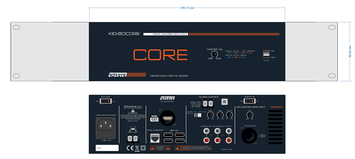 KID-80CORE представляет собой профессиональный микшер-усилитель производства фирмы RORSYS, оснащённый микрокомпьютеров. Прибор предназначен для построения высококачественных систем озвучивания коммерческих объектов различного назначения и жилых пространств. Интеграция работы с лицензированными сервисами распространения цифровой музыки и видеоконтента (например Spotify, Яндекс.Музыка, Netflix) обеспечивает пользователя мультимедийным контентом высочайшего качества.