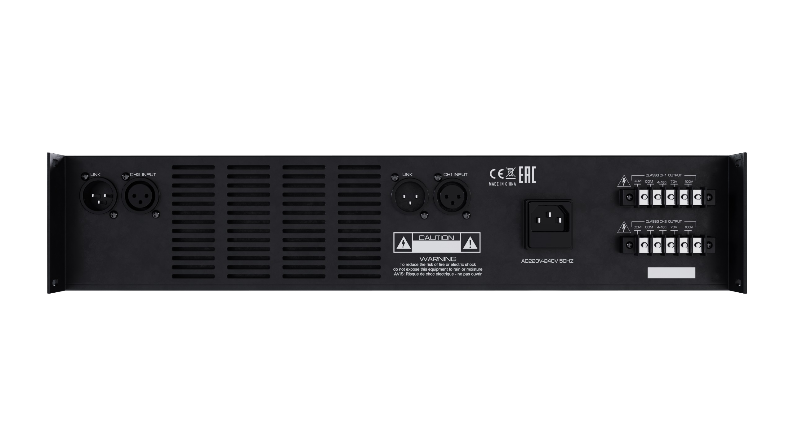 Двухканальный, выходная мощность = 2х 60 Вт. Усилитель можно использовать с низкоомными акустическими системами (импеданс 8 Ом) или с трансляционными (напряжение линии 70 или 100 В). Обеспечивает рабочие частоты в диапазоне 60 - 20 000 Гц, отличное соотношение сигнал/шум 100 дБ, гармонические искажения THD <0.5%.