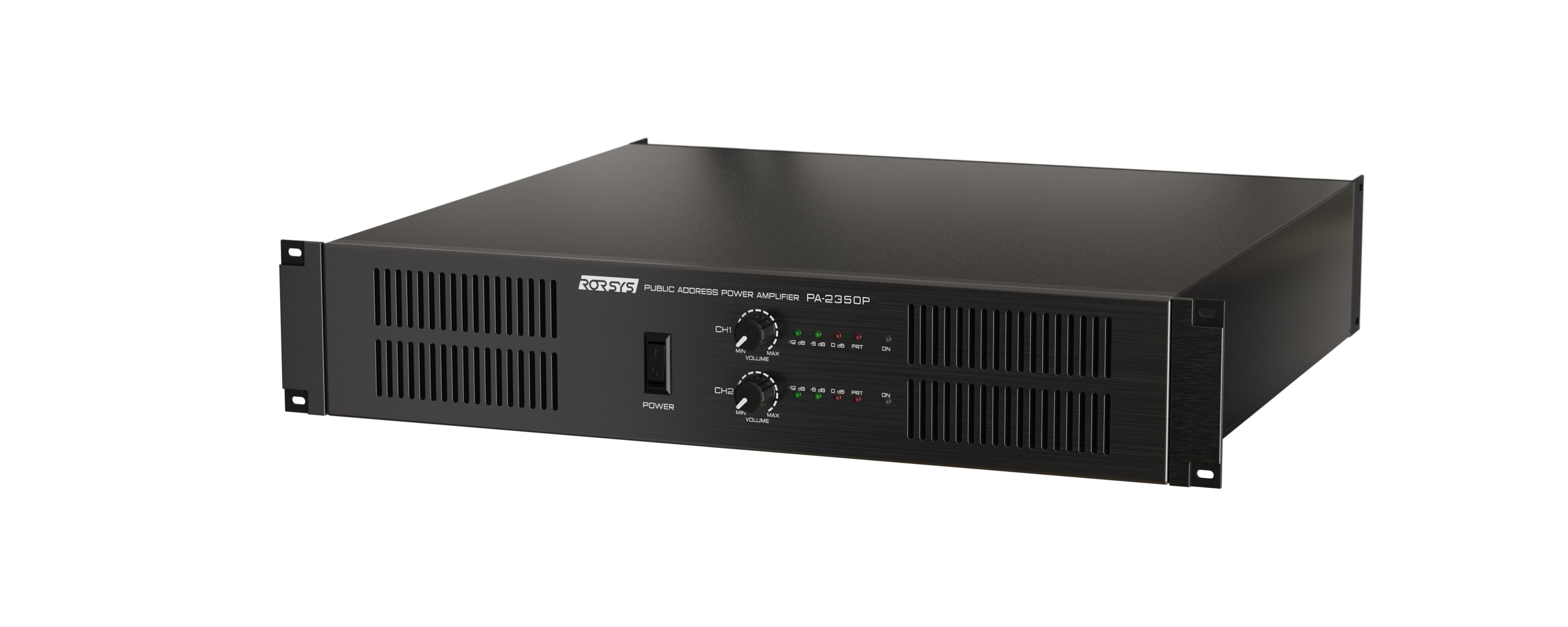 В усилителе PA-2350P предусмотрена защита от потенциальных неприятностей: короткого замыкания, перегрузки сигнала на выходе и перегрева (вентилятор с интеллектуальным управлением). Установка на стол или в RACK-стойку, монтажные крепления в комплекте. Габаритные размеры 485х88х340 мм (2U), масса 19 кг. Питание от сети ~220В.