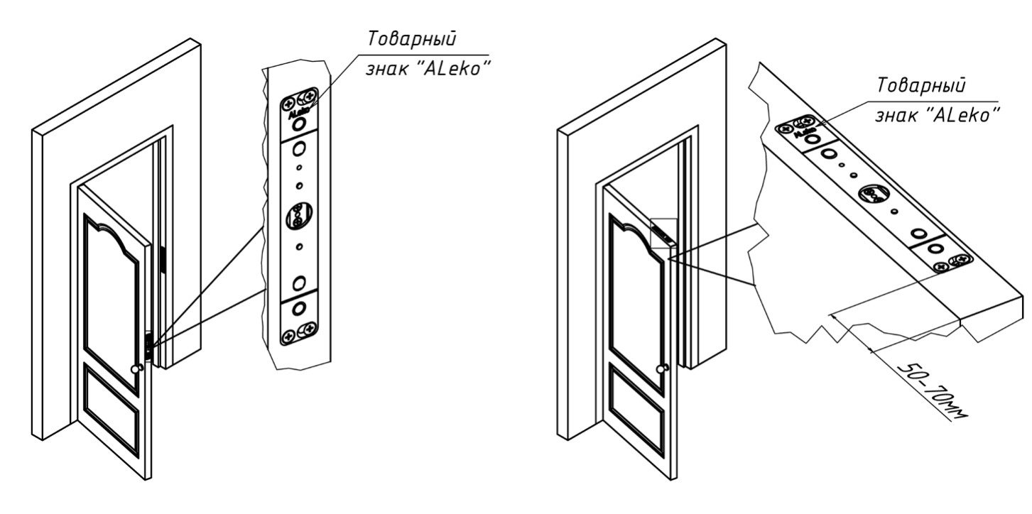 | Тип подходящих дверей | распашные, маятниковые или раздвижные толщиной от 35 мм |