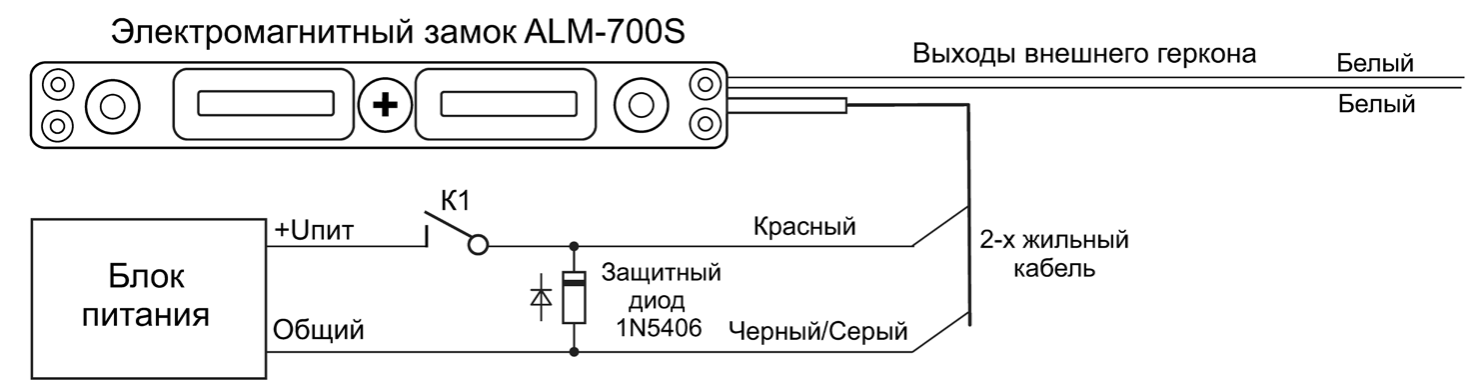 Выдерживает усилие на взлом 630-700 кгс, класс U4 согласно ГОСТ Р 58822-2020. Нормально-открытый, без питания замка дверь находится в свободном состоянии, но при поступлении напряжения от управляющего прибора, замок её блокирует и остается закрытым пока питание в наличии. Встроенный датчик контроля положения двери (геркон) мониторит ее состояние (открыта или закрыта) и передает данные на контрольный блок, что удобно при создании системы подсчета проходов. Также, геркон выполняет функцию тревожного извещения при фиксации некорректной работы двери или самого замка.