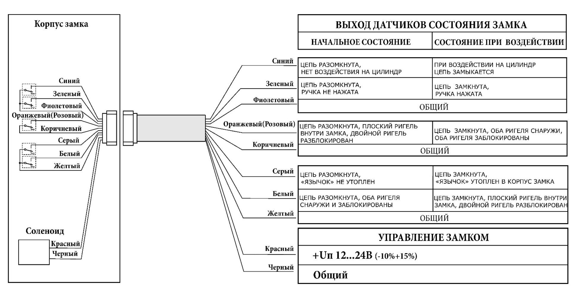 | Встроенные датчики | положения двух ригелей, цилиндра, язычка и ручки |