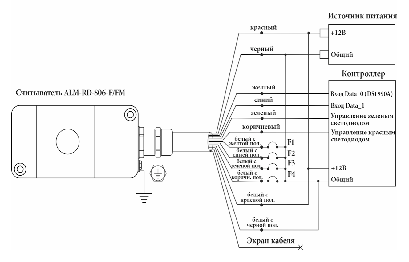 | Удаленность от контроллера СКУД: | DS1990A в пределах 15 м, Wiegand до 100 м |