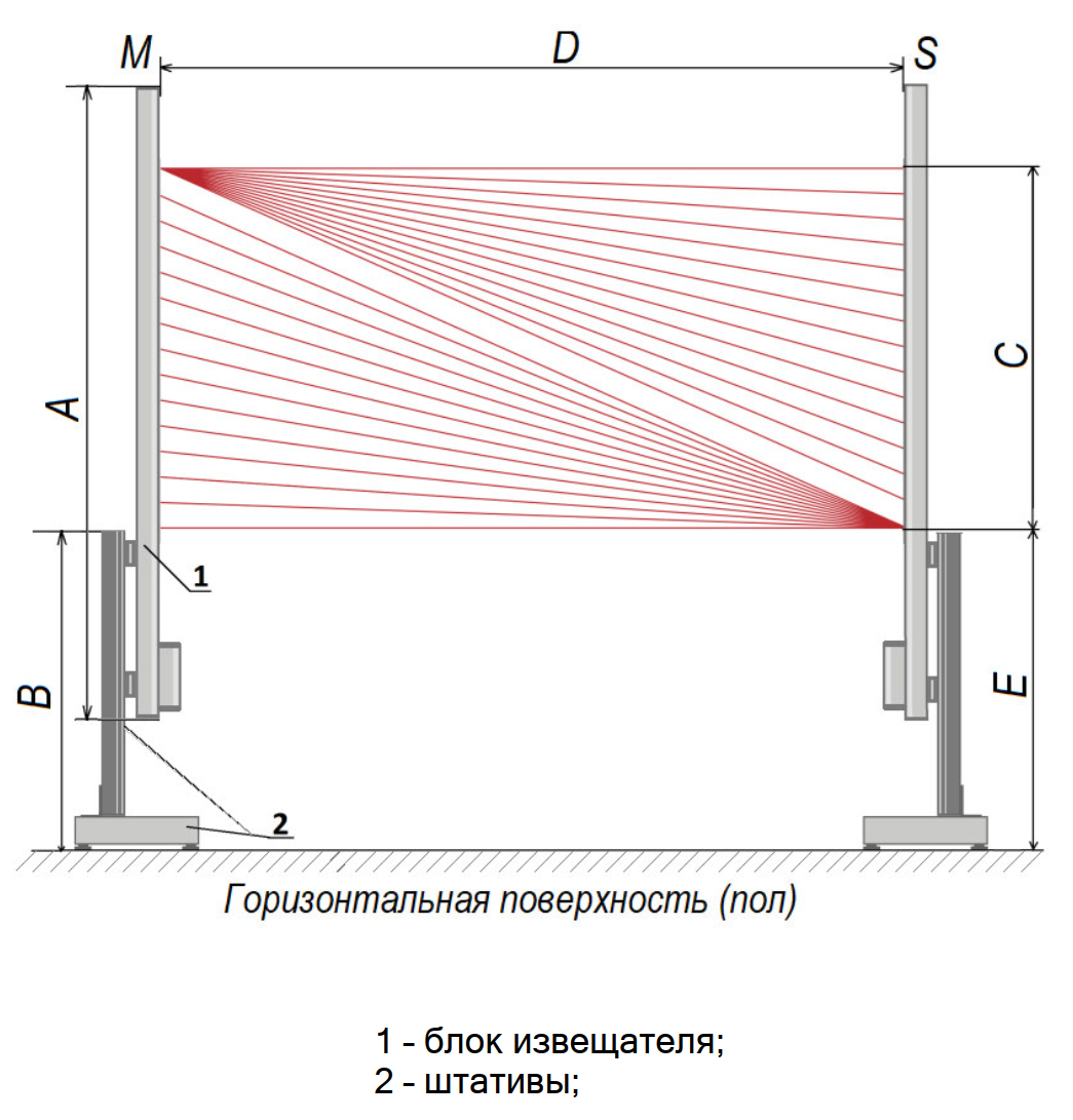 Количество лучей | 24 диагональных, срабатывает при пересечении любого луча |