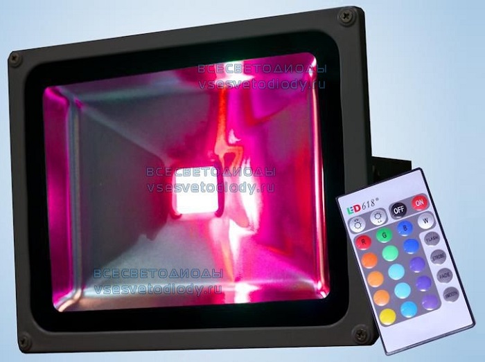 ВСЕСВЕТОДИОДЫ EPISTAR 30W 2600Lm – уличный светодиодный RGB прожектор, оснащенный сверхмощным светодиодом на 30 Вт и 2600-2800 Лм от компании EPISTAR. Широкий угол рассеивания светового потока в сочетании с различными цветами свечения делают его наиболее удачным выбором для организации архитектурной подсветки фасадов зданий, фонтанов и памятников, ландшафтного освещения, подсветки рекламных щитов и т.д. Прожектор надежно защищен от проникновения внутрь пыли и влаги (IP65), не чувствителен к воздействию экстремально низких/высоких температур и не требует регулярного технического обслуживания, за счет чего может устанавливаться в любых, даже наиболее труднодоступных местах. Для удобства пользователя в комплект поставки включен пульт дистанционого управления и металлический кронштейн-скоба, позволяющий изменять направление светового потока в вертикальной или горизонтальной плоскости.