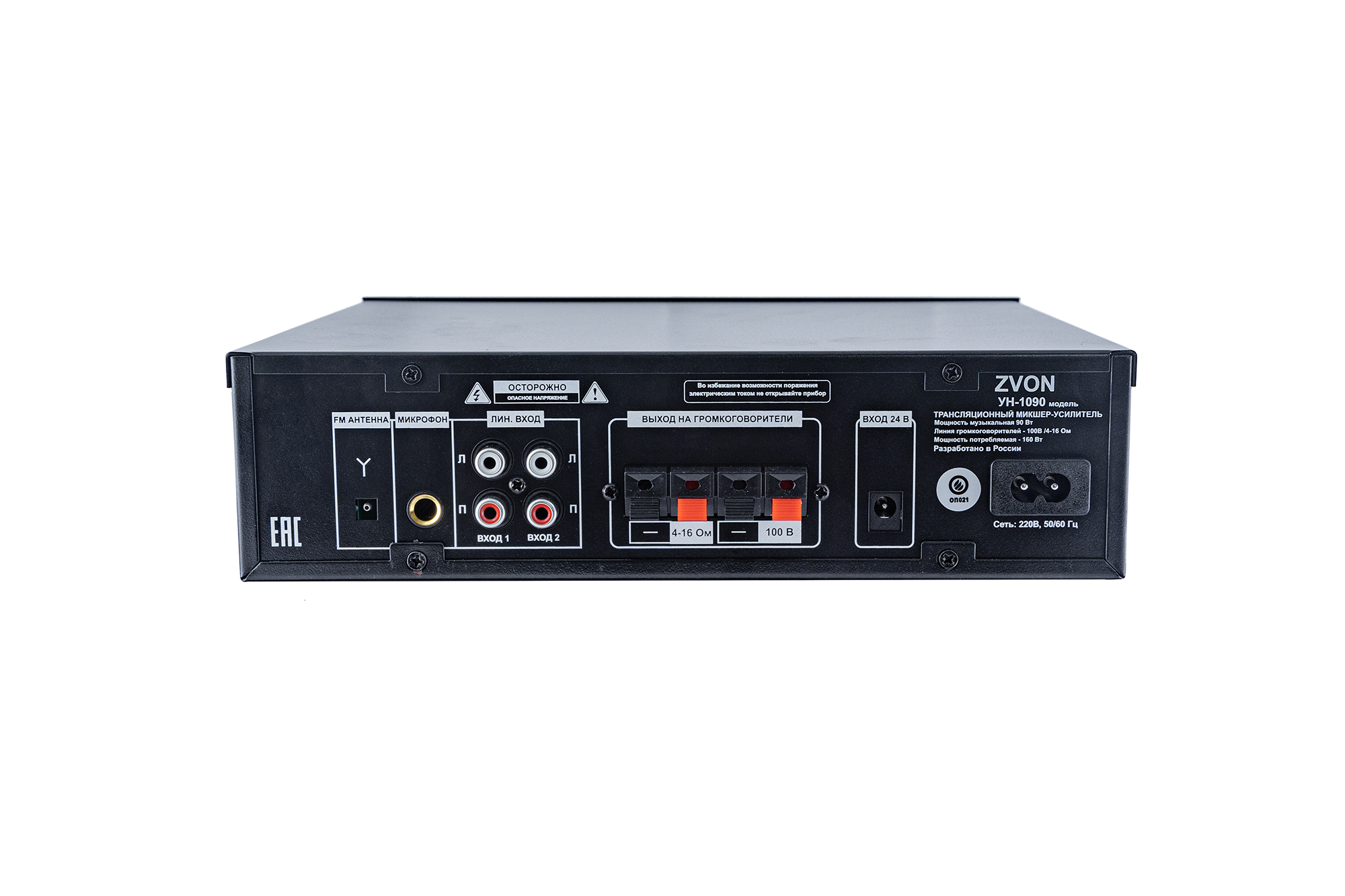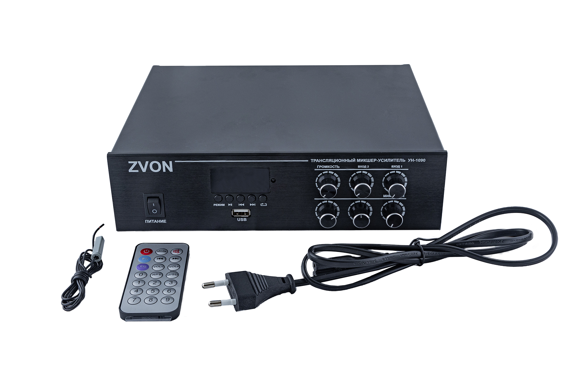 Микшер-усилитель УН-1090 из серии ZVON от MKV Pro подходит для создания на его базе небольших аудиосистем, выполняющих функции музыкально-речевых трансляций и голосовых объявлений. Встроенный медиаплеер позволяет применять усилитель автономно, используя в качестве источника звука USB-носитель. Целесообразна эксплуатация на таких объектах как АЗС, магазины, кафе, рестораны, лобби гостиниц, залы ожидания и т.д.