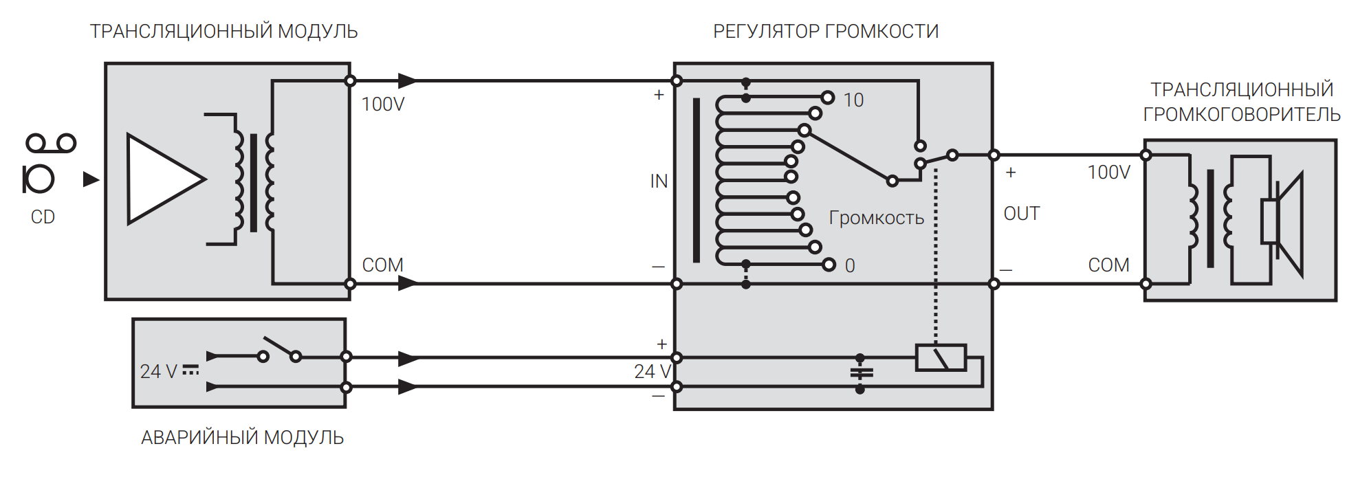 Акустические линии | 100 В |