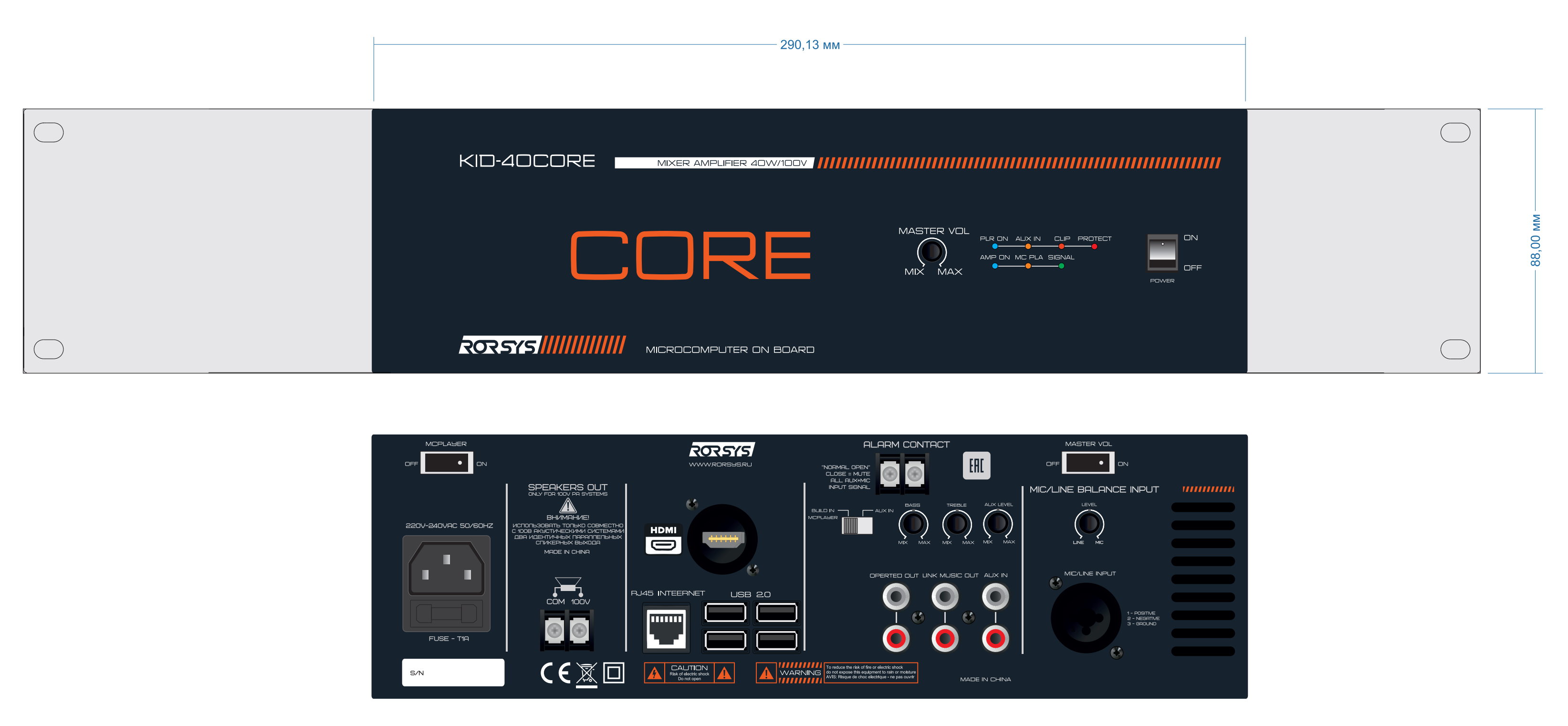 KID-40CORE представляет собой профессиональный микшер-усилитель производства фирмы RORSYS, оснащённый микрокомпьютеров. Прибор предназначен для построения высококачественных систем озвучивания коммерческих объектов различного назначения и жилых пространств. Интеграция работы с лицензированными сервисами распространения цифровой музыки и видеоконтента (например Spotify, Яндекс.Музыка, Netflix) обеспечивает пользователя мультимедийным контентом высочайшего качества.