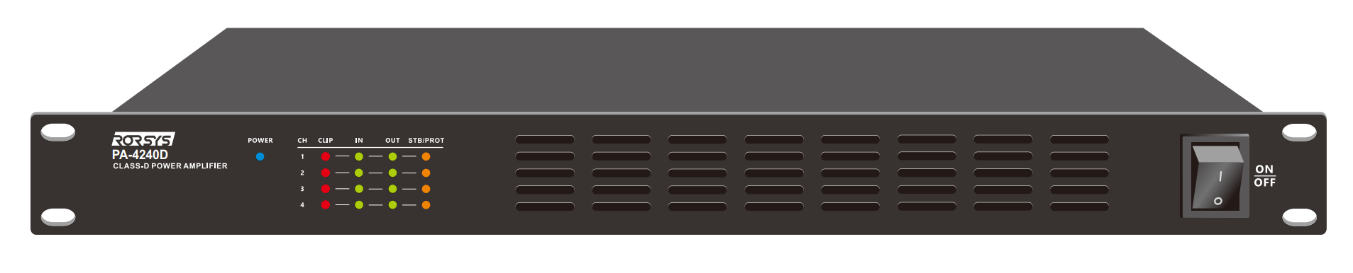 Профессиональный усилитель класса D PA-4240D подходит для создания на его базе профессиональных и эффективных аудио-систем, выполняющих функции фонового музыкального вещания или голосовых объявлений в помещениях большой площади. Поддерживает усиление по нескольким независимым каналам, что дает возможность одновременного вещания высокой мощности в четырех локациях. Подходит для ресторанов/кафе, АЗС, офисных центров, банков, отелей, фитнесс-центров и т.д., и т.п.
