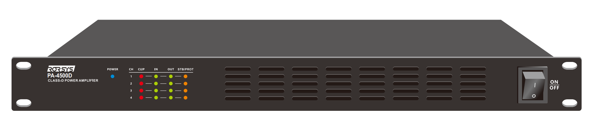 Профессиональный усилитель класса D PA-4500D подходит для создания на его базе профессиональных и эффективных аудио-систем, выполняющих функции фонового музыкального вещания или голосовых объявлений в помещениях большой площади. Поддерживает усиление по нескольким независимым каналам, что дает возможность одновременного вещания высокой мощности в четырех локациях. Подходит для ресторанов/кафе, АЗС, офисных центров, банков, отелей, фитнесс-центров и т.д., и т.п.