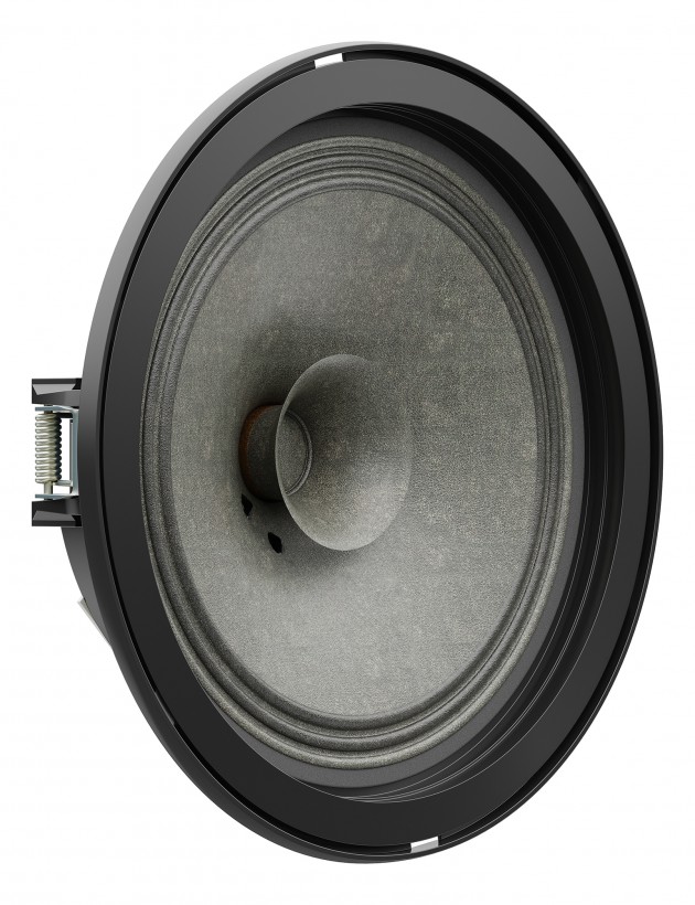 Стильный корпус с практически незаметной рамкой из качественного ABS-пластика и стальной сеткой, выполняющей защитную и декоративную функции. Подключение к усилителю с помощью 6-контактной клеммной колодки. Габаритные размеры Ø186x80 мм, вес 700 г. Монтаж в потолок, врезной, крепление с помощью пружинных зажимов, установочные размеры Ø165x70 мм. IP41. Черный цвет.