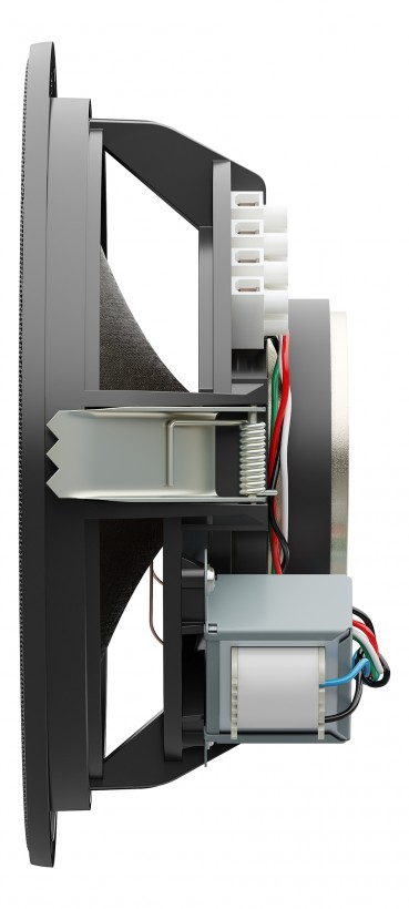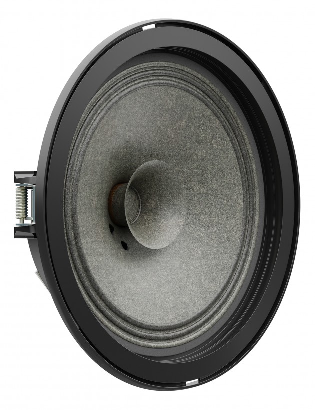 Стильный корпус с практически незаметной рамкой из качественного ABS-пластика и стальной сеткой, выполняющей защитную и декоративную функции. Подключение к усилителю с помощью 6-контактной клеммной колодки. Габаритные размеры Ø186x80 мм, вес 800 г. Монтаж в потолок, врезной, крепление с помощью пружинных зажимов, установочные размеры Ø165x70 мм. IP41. Черный цвет.