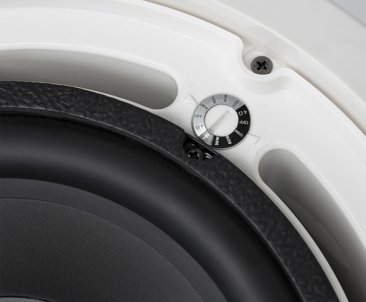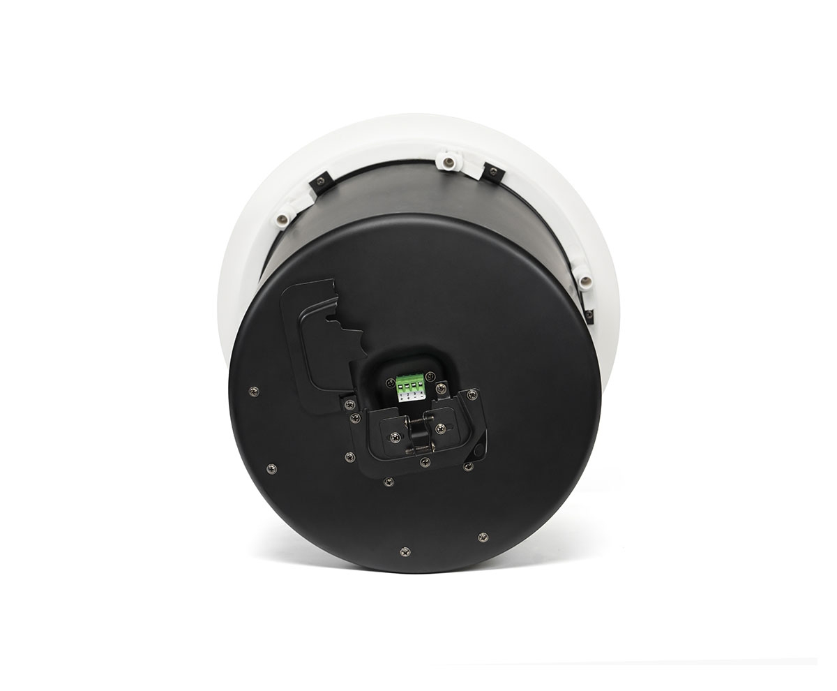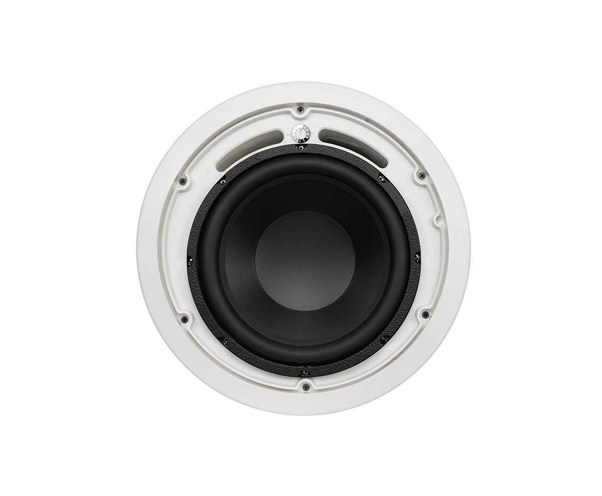 Корпус C-SUB-1024T изготовлен из металла, динамики скрыты декоративной пластиковой решеткой белого цвета. Селектор расположен под решеткой. Габаритные размеры Ø 360 мм, глубина 330 мм, масса 9.5 кг. Монтаж встраиваемый в потолок (скрытый).