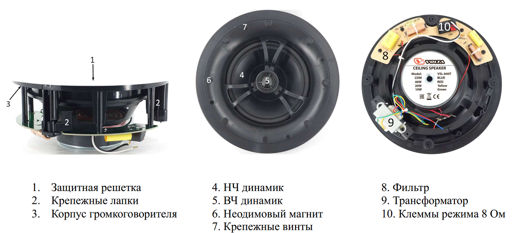| Тип устройства | Потолочный громкоговоритель для коммерческих систем звукофикации |