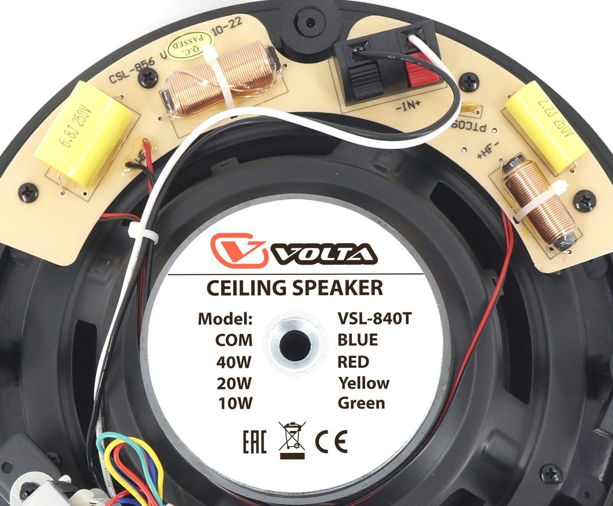 VOLTA VSL-840T - это потолочный громкоговоритель созданный для работы в составе систем музыкально-речевых трансляций. Прекрасное решение для качественного озвучивания ресторанов, бутиков, выставочных и конференц-залов учебных и культурных учреждений, а также в любых помещениях с подвесным потолком, где требуется хороший четкий звук и важна эстетическая составляющая технических устройств.