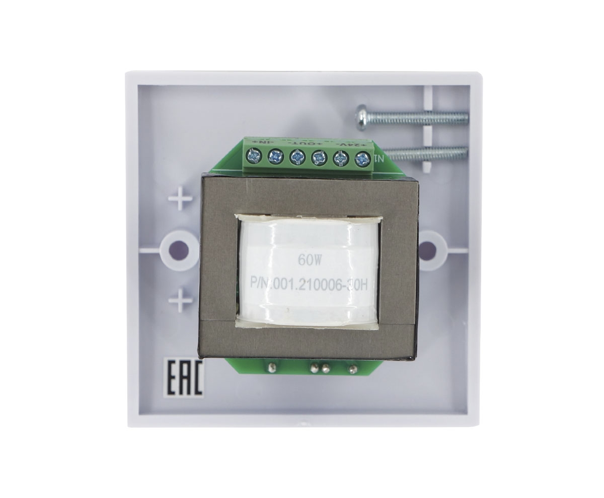 Аттенюатор выполнен из качественного ABS-пластика серого цвета и предполагает настенное размещение врезным или накладным способом с применением соответствующих монтажных элементов.