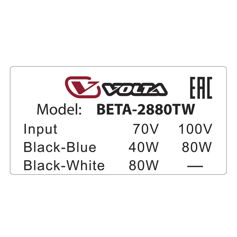 VOLTA BETA-2880T - это всепогодный громкоговоритель, "звуковая колонна". Используется в системах звукофикации с целью воспроизведения речи или музыки на хорошем уровне. Подходит для коммерческого применения: кафе, рестораны, включая летние веранды и территории отелей, а также общественной эксплуатации в парках, на площадях, фасадах административных/учебных зданий и т.д., и т.п.