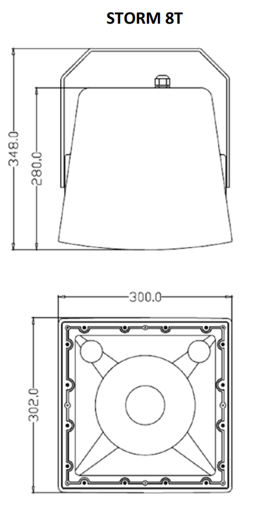 Универсальный прибор, акустическая система STORM-8T работает как под управлением трансляционного усилителя в линиях с напряжением 100В, так и в связке с низкоомным усилителем в линиях с импедансом 8 Ом. Мощность выбирается селектором из вариантов: 150 Вт (8 Ом); 37.5 / 75 / 150 Вт (100В). Подключение к усилителю с помощью разъема Speakon 4-pin.