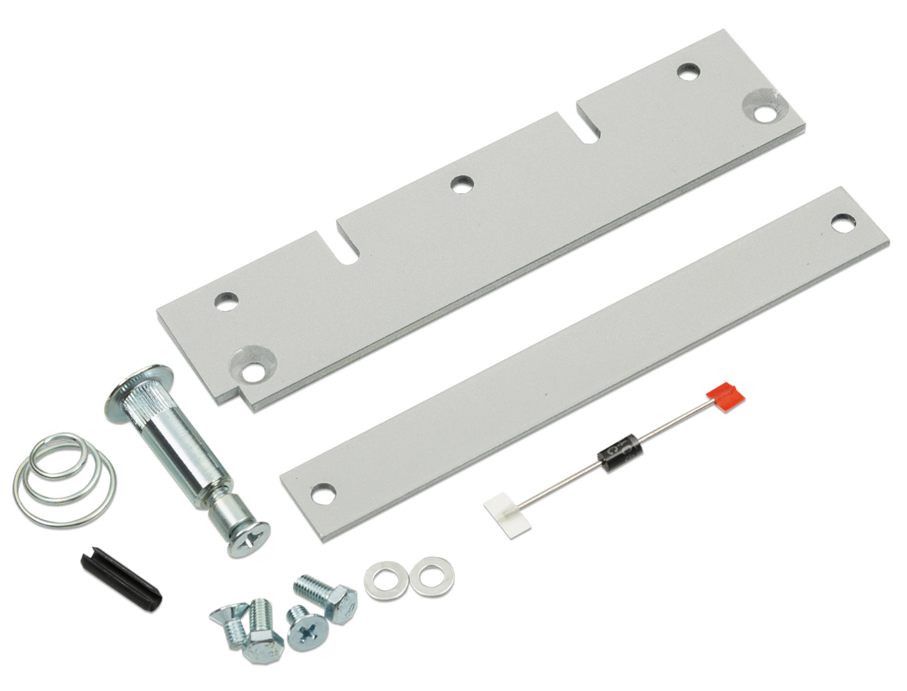 Монтаж накладной. Корпус монтируется в верхней части дверной коробки напротив якоря, установленного на дверном полотне. Важным условием для обеспечения максимального удерживающего усилия и длительного срока службы с заданными эксплуатационными характеристиками без проведения техобслуживания является обязательное соблюдение плотного прилегания рабочих плоскостей обеих частей при закрытом положении двери.