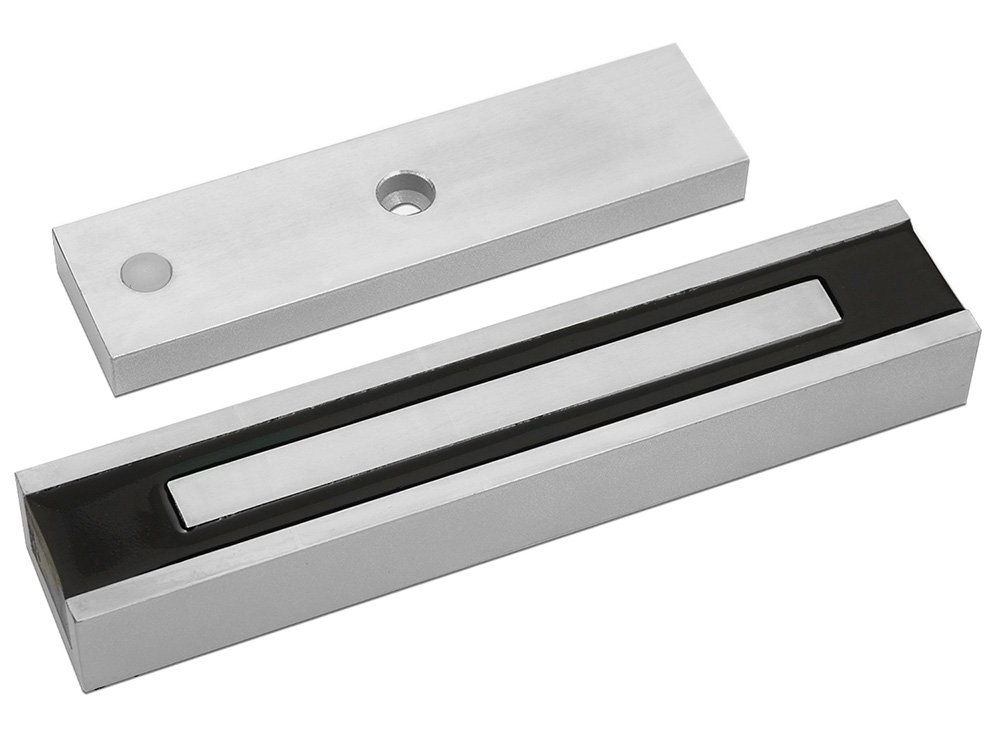 Монтаж накладной. Корпус монтируется в верхней части дверной коробки напротив якоря, установленного на дверном полотне. Важным условием для обеспечения максимального удерживающего усилия и длительного срока службы с заданными эксплуатационными характеристиками без проведения техобслуживания является обязательное соблюдение плотного прилегания рабочих плоскостей обеих частей при закрытом положении двери.