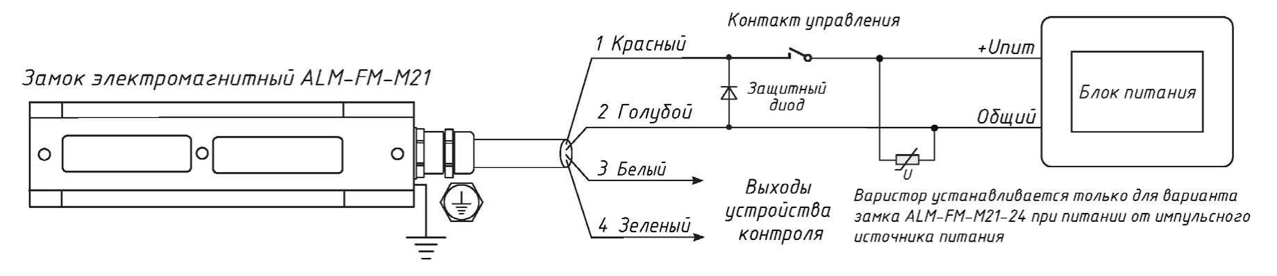 Замок модификации ALM-FM-M21-G-K оснащен четырехжильным кабелем длиной 2 метра и герметичным кабельным вводом для последующей открытой прокладки кабеля.