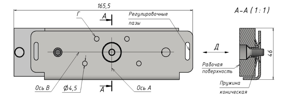 Монтаж накладной. Корпус монтируется в верхней части дверной коробки напротив якоря, установленного на полотне. Важным условием для обеспечения максимального удерживающего усилия и длительного срока службы с заданными эксплуатационными характеристиками без проведения техобслуживания является обязательное соблюдение плотного прилегания рабочих плоскостей обеих частей при закрытом положении двери.