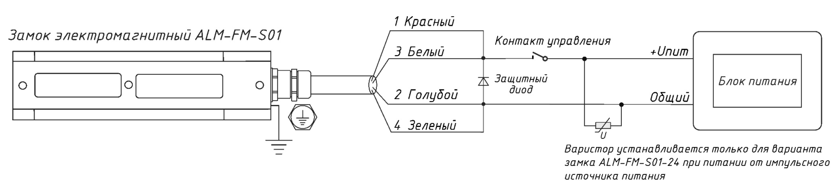 Замок модификации ALM-FM-S01-B оснащен четырехжильным кабелем длиной 2 метра и герметичным кабельным вводом для последующей прокладки бронированного кабеля.