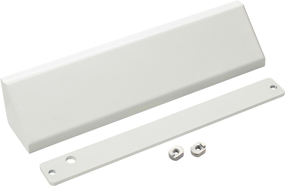 В составе комплекта: планка, уголок, две резьбовые втулки М5 и декоративный кожух. При заказе можно выбрать цвет кожуха в цвет корпуса самого замка. Варианты цвета: белый, серый, черный или коричневый.