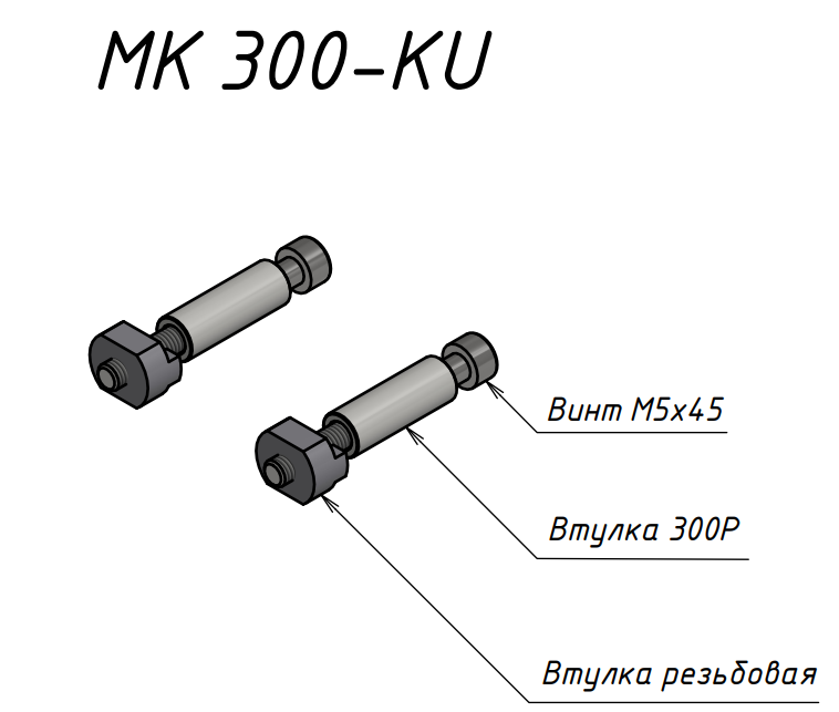 В составе комплекта: два винта М5х40, две втулки 300Р и две резьбовые втулки.