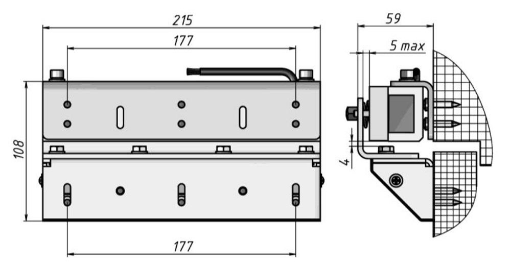 В составе комплекта: два уголка (корпуса и якоря), кронштейн якоря, кожух уголка якоря, декоративный кожух корпуса и комплект крепежа. Цвет серый.