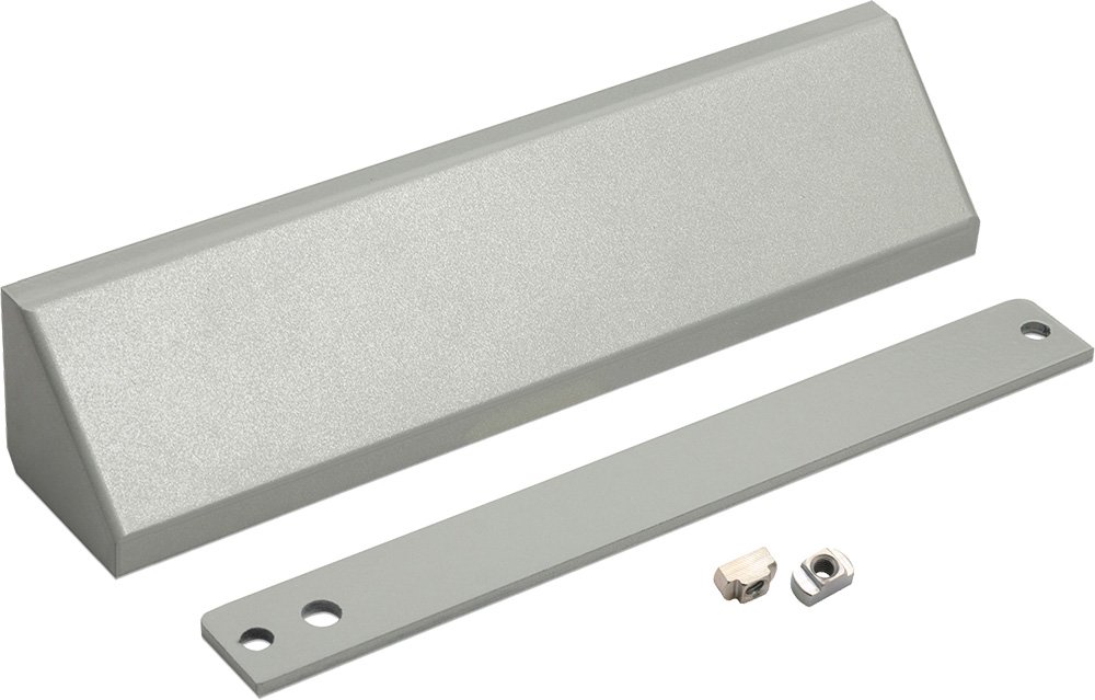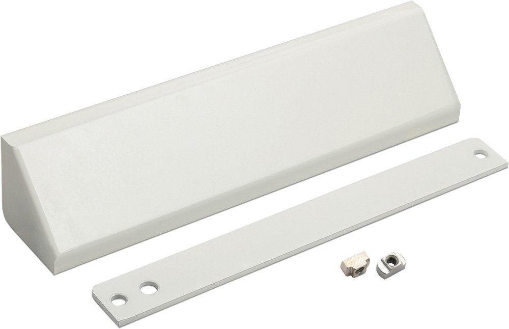 В составе комплекта: планка, уголок, две резьбовые втулки М6 и декоративный кожух. При заказе можно выбрать цвет кожуха в цвет корпуса самого замка. Варианты цвета: белый, серый, черный или коричневый.